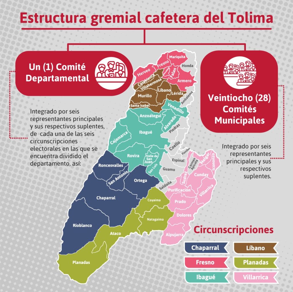 De otra parte, de acuerdo con Paola Bonilla, Coordinadora Gremial del Comité de Cafeteros del Tolima, está establecido que los Comités Municipales (que en el Tolima son 28) sesionen mensualmente para abordar temas relacionados con la dinámica cafetera de sus localidades. En dichas reuniones se presentan propuestas, inquietudes e iniciativas que propenden por el bienestar de las familias cafeteras.